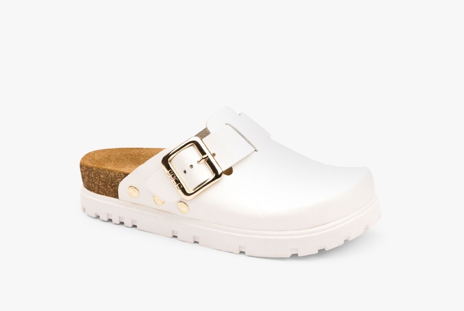 Ženska klompa izrađena od prirodne kože i kožnom tabanicom koja sadrži masažni gel. Izrađena od prirodnog materijala – koža, i poliuretanskim đonom.