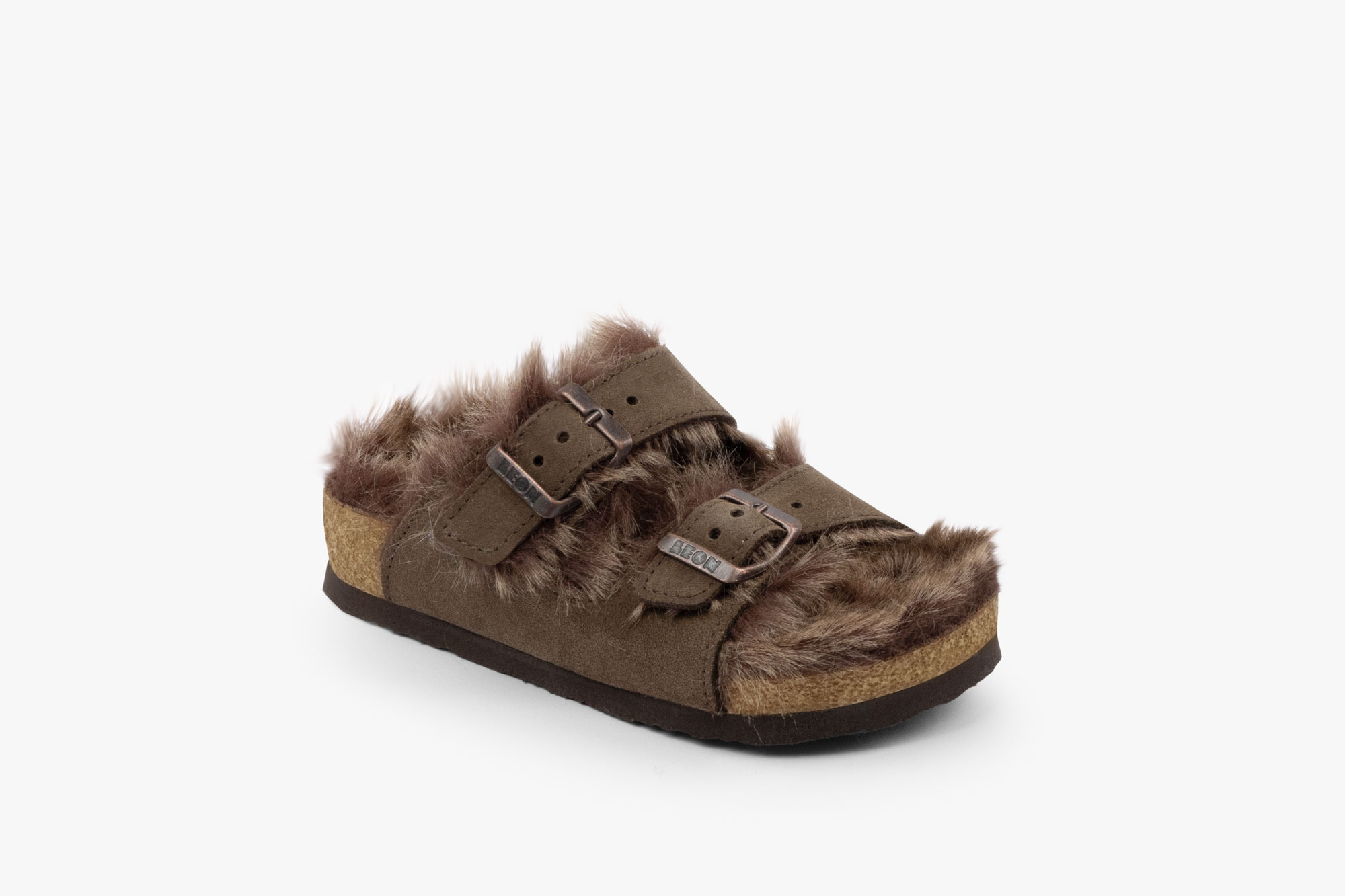Dečija anatomska papuča sa posebno oblikovanim gazištem i masažnim gelom. Izrađena od eko krzna i prirodne kože.